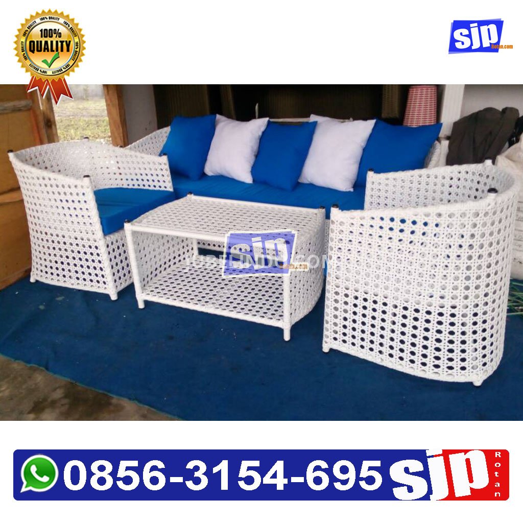 sofa rotan sintetis anyaman mata ayam rangka besi